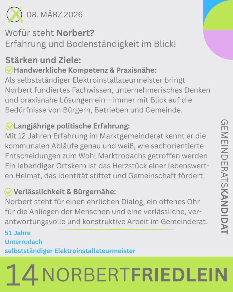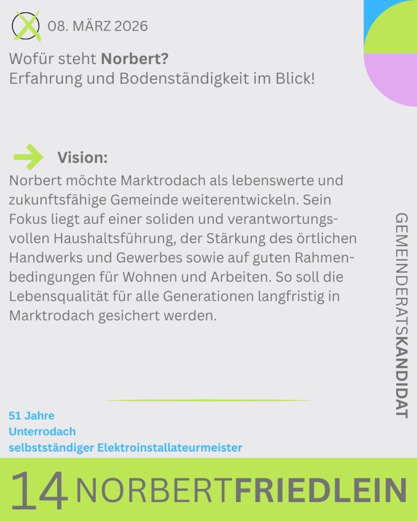 Ein lebenswertes, zukunftsfähiges Marktrodach für alle Generationen – dafür steht Norbert!